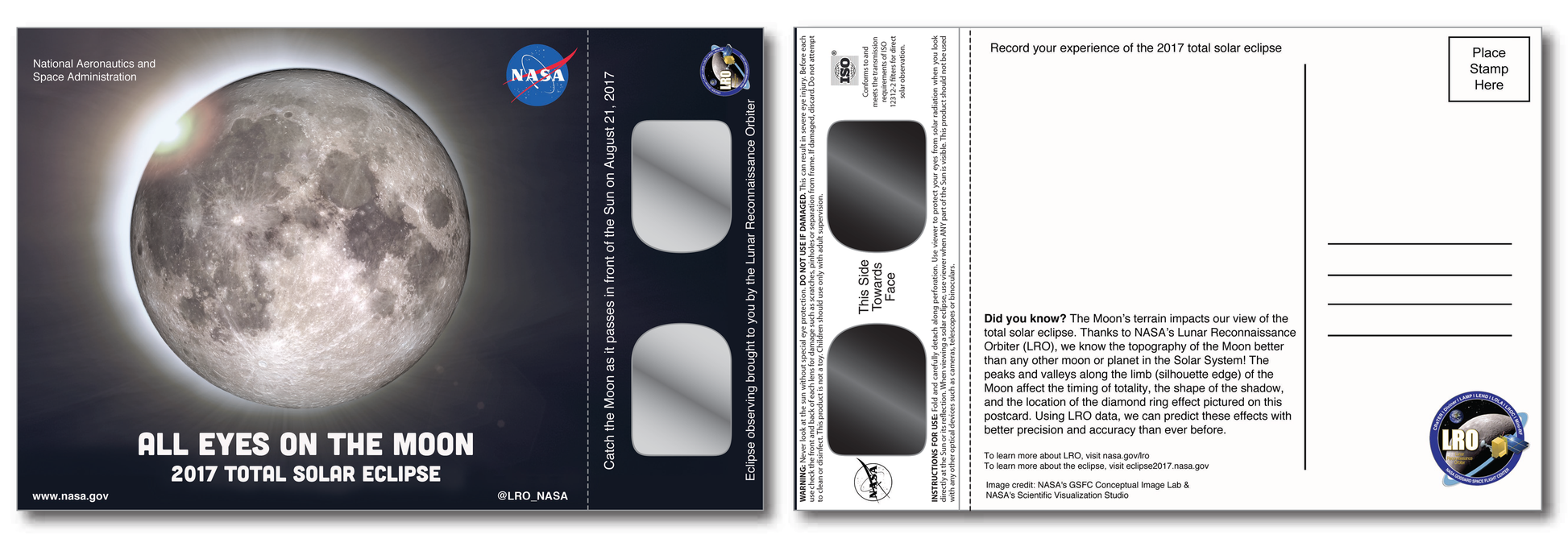 Safeguard your eyes from dangerous solar radiation during solar events and eclipses with eclipse glasses trusted by the AAS and NASA. These glasses meet the standard for ISO 12312-2:2015 and are "CE" Certified, which means that they meet the transmission requirements for scale 12-16 of EN 169/1992 for completely safe direct solar viewing. Like all of our eclipse sunglasses, these novelty postcards meet the 2012 Transmission Requirements of EN 1836:2005 and AS/NZS 1338.1:1992 for eclipse filters (Queensland Directive).