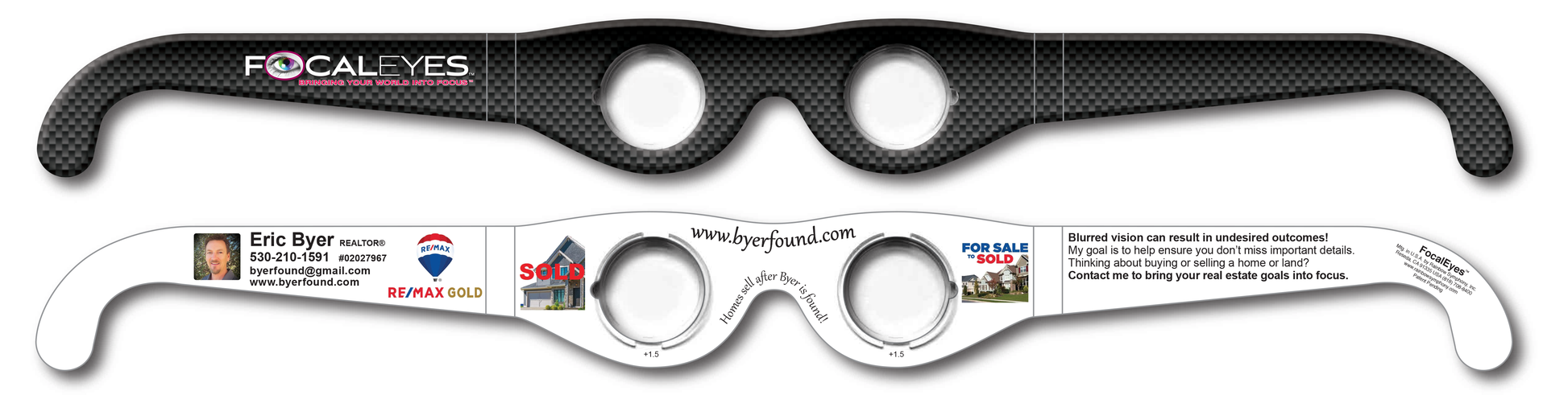 Thanks to a revolutionary patented process, you can enjoy the benefits of portable, durable, low-cost reading glasses. Introducing FocalEyes™, the affordable paper framed “reading assist glasses” that go everywhere you go to enhance your reading experience, even in low light situations. FocalEyes™ make reading the fine print on menus, prescription bottles and even instruction manuals a breeze. FocalEyes™ come in a variety of lens strengths, such as +1.5, +2.0 +2.5 and +5.0, so you can have the magnification power that best suits your needs. Our +5.0 is a wearable magnifying glass that can be used for fine detail work.